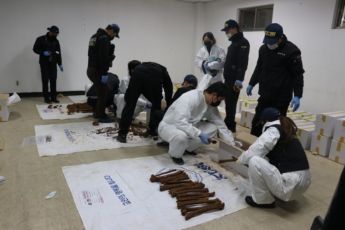 ▲ 신원미상 유골 육안 검시하는 합동감식반. 연합뉴스 제공