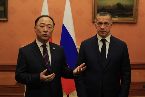홍 부총리는 또 "회담에서 (9개 분야에 걸친 한·러 경제협력 사업인) '나인브릿지'(9-Bridge) 사업들을 종합적으로 중간 점검했으며, 이를 토대로 앞으로 좀 더 속도감 있게 사업을 실현해 나가도록 노력하기로 했다"고 전했다.