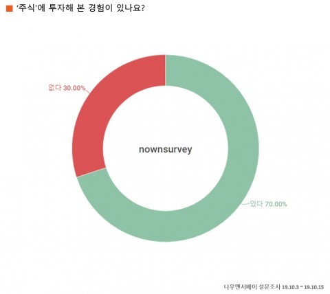 설문조사회사 엘림넷 나우앤서베이가 10월 3일부터 10월 15일까지 13일간 자체 직장인 패널 888명(남성 533명, 여성 355명)을 대상으로 ‘당신에게 주식(stock)은 무엇입니까?’에 관한 설문조사를 실시한 결과, 주식 투자 경험이 있다고 답한 응답은 70%에 달했다.