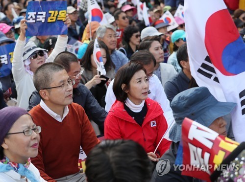 나경원 원내대표는 집회 후 기자들과 만나 "국민 분노가 임계점에 달했고 이제는 문 대통령이 결단해야 할 시간"이라고 말했다.