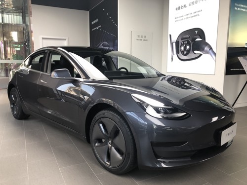 ▲'메이드 인 차이나' 테슬라 모델3 4일 중국 상하이 쇼핑몰 래플스에 자리 잡은 테슬라 매장에 상하이 공장에서 생산된 중국산 모델3가 전시되어 있다. 연합뉴스 제공 |