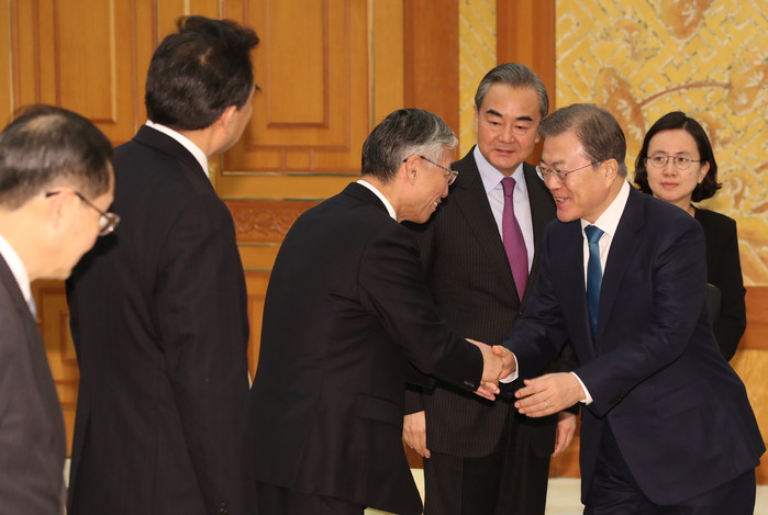 문 대통령은 이날 오후 청와대에서 왕이(王毅) 중국 외교담당 국무위원 겸 외교부장을 접견한 자리에서 "지금 한반도의 완전한 비핵화와 항구적 평화 구축을 위한 프로세스가 중대한 기로를 맞이하고 있다"며 이같이 밝혔다.