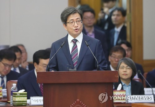 김명수 대법원장이 2일 서초동 대법원에서 열린 국회 법사위 국정감사에서 인사말을 하고 있다