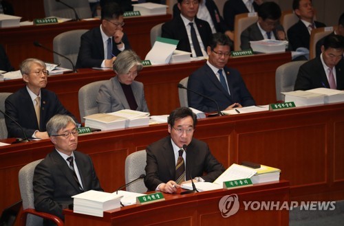이낙연 국무총리가 28일 오후 국회에서 열린 예산결산특별위원회 전체회의에서 의원들 질의에 답하고 있다.