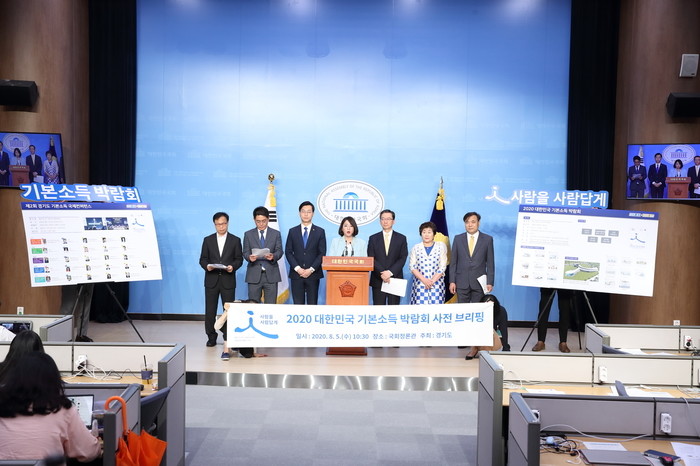이 자리에는 ‘2020 기본소득 박람회’ 대변인 용혜인 국회의원, 조직위원인 장경태 국회의원, 노민호 박람회 조직위 부위원장, 심규순 경기도의회 기획재정위원장, 김재용 경기도 정책공약수석, 김홍국 경기도 대변인 등이 함께했다.