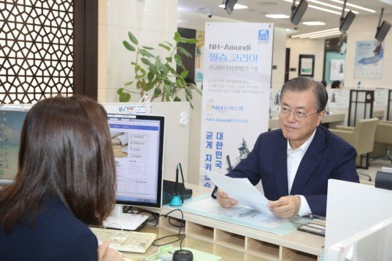 ▲ 문재인 대통령이 가입한 필승코리아 펀드가 출시 1년 만에 수익률 56%에 달하는 높은 수익률을 달성한 것으로 나타났다. (사진=NH농협금융) |