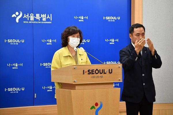 ▲ 박유미 서울시 방역통제관이 24일 코로나19 관련 긴급브리핑을 하고 있다. 서울시 제공