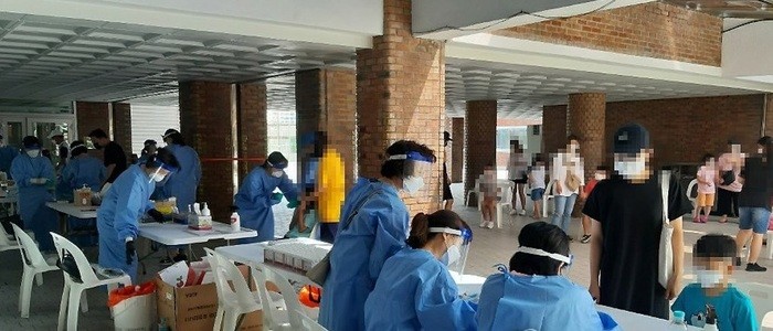 ▲ 23일 강원 춘천시 남부초등학교에 마련된 선별진료소에서 학생들이 코로나19 검사를 받고 있다. 춘천시 제공