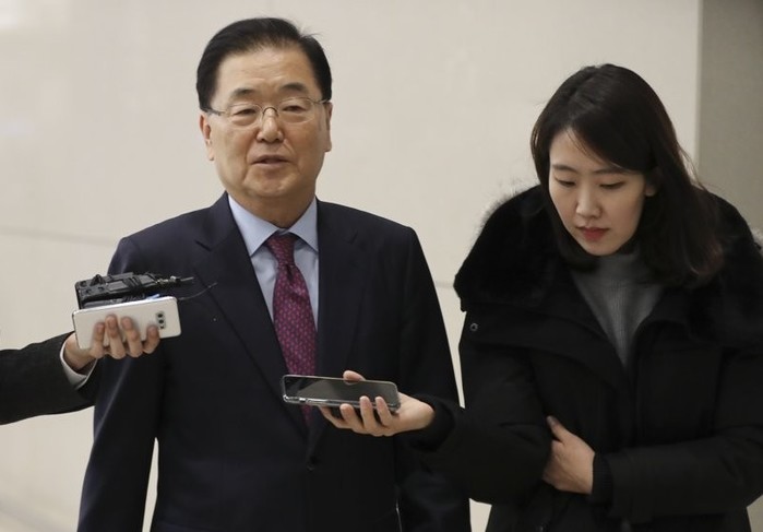 정 실장은 미국 방문 뒤 이날 오후 인천국제공항을 통해 입국하며 기자들을 만나 트럼프 대통령과의 면담 결과를 설명했다.