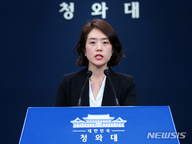 고민정 청와대 대변인은 이날 오후 춘추관에서 기자들과 만나 '일본의 수출규제 조치 해제가 선행돼야 지소미아를 연장하겠다는 정부 입장이 강제징용 문제를 시한 내에 풀 수 없는 현실적 한계 때문'이라는 보도에 대한 청와대 입장 질문에 "지소미아와 관련해서 어떤 사안과 연관을 짓는지는 언론의 자유"라며 이렇게 밝혔다.